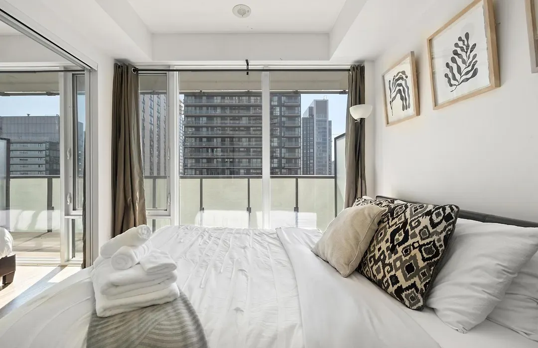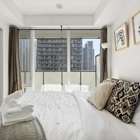 COZY Downtown Toronto Suites位于多伦多市中心区,毗邻内森·菲利普斯广场,距离古酿酒厂区有10分钟车程. 这家住宿距离奧斯古站地铁站步行约5分钟.住宿处有1间卧室,1间浴室和厨房.